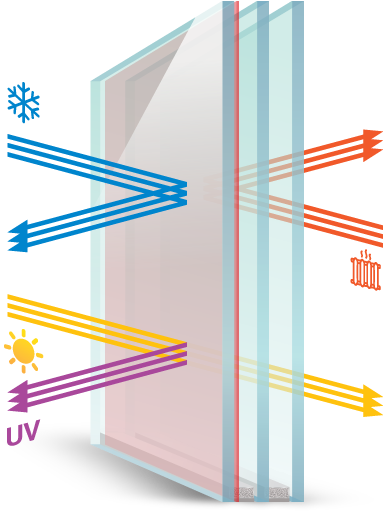 Усовершенствование энергосберегающих стекол. Специальное многослойное напыление не только сохраняет тепло в доме, но и обладает солнцезащитным эффектом. Блокируется до 60% солнечного излучения в инфракрасном спектре, что позволяет летом охлаждать помещение быстрее и тратить меньше электроэнергии на поддержание оптимальной температуры.